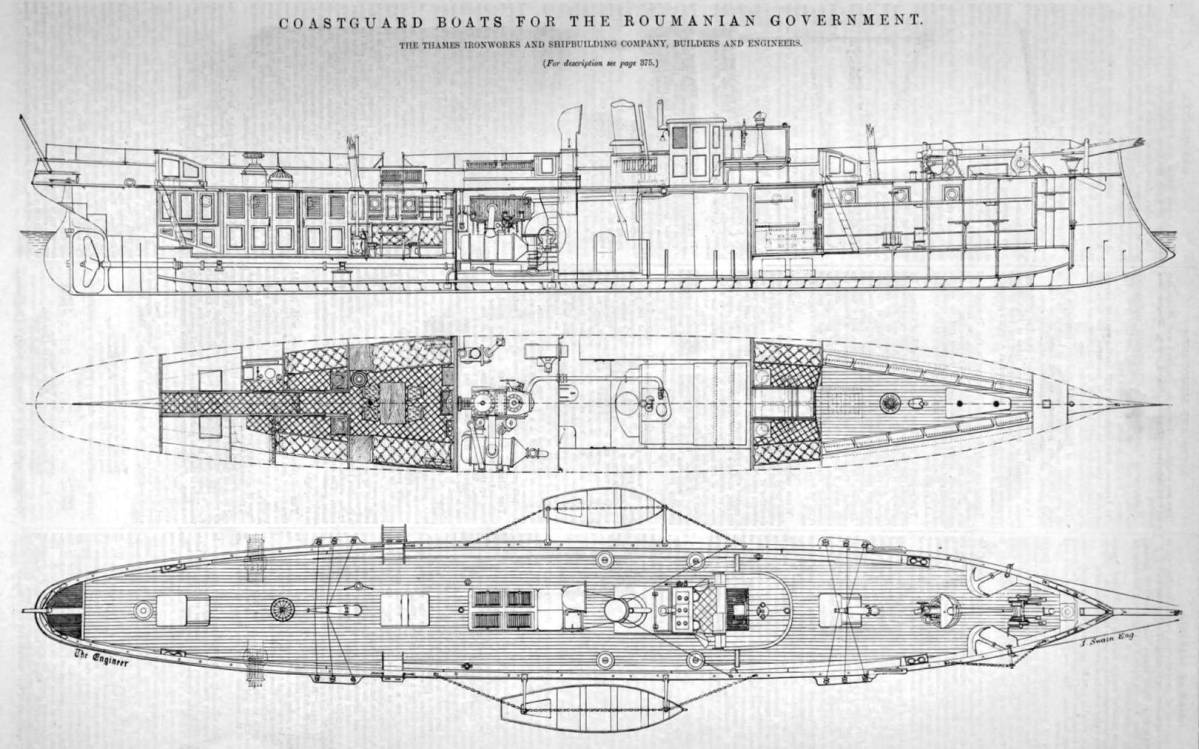 Aceste bijuterii victoriene a căror formă vi se va părea poate familiară, etrava inversată revenind recent în atenţia constructorilor navali, au fost construite de şantierul „Blacknall”[1] al firmei britanice „Thames Iron Works” din Londra costând bugetul României câte 125000 de lei fiecare.[2]