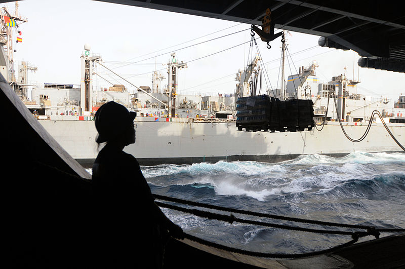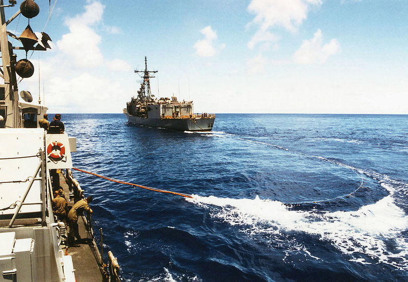 O mica corectie Nicolae. Fotografia care „reprezinta” un crucisator din clasa Ticonderoga renuntand la un „UNREP” este de fapt un distrugator din clasa Spruance. Nu cred ca nava respectiva a renuntat la UNREP. De obicei UNREP se efectueaza in conditii de mare de pana la Sea State 5 (deci valuri pana la 4 metri). Ma de graba fotografia cred ca reprezinta un Spruance efectuand o manevra de exerciutiu „emergency breakway” dupa completarea UNREP.